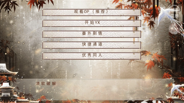 2、若想了解剧情,可优先【观看OP(推荐)】;开启新剧情,点击【开始YX】;若要看额外内容,选择【番外剧情】;想要走特定情节,使用【快捷通道】;欣赏同人作品则点击【优秀同人】,请按需操作。