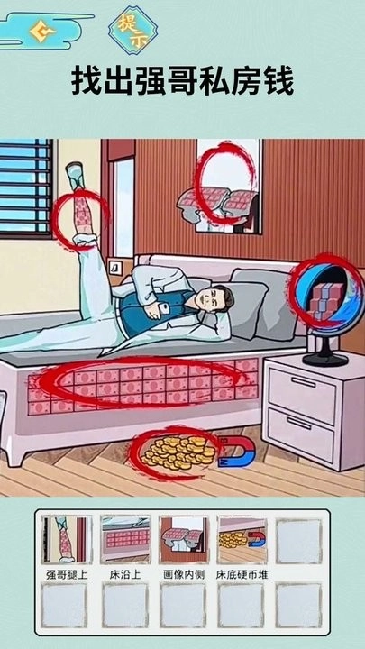 1. 在规定时间内对左右画面进行对比,以点击或者圈选的形式,标记出诸如颜色变化、物品位移等细微差异以及隐藏线索。