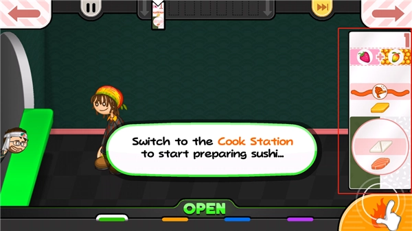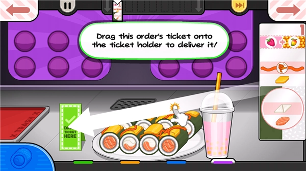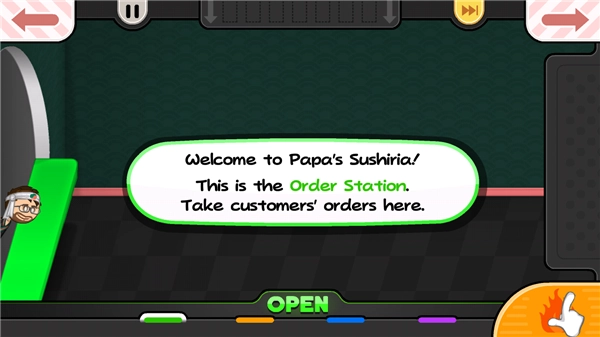 4、紧接着会为玩家介绍寿司店,点击右下角的按钮,即可进入订单站,顾客的订单全都在此处。