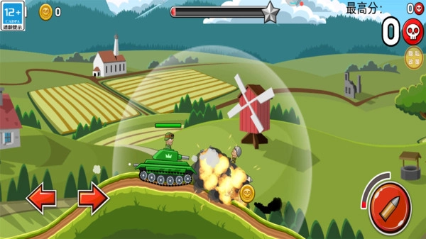 2. 收集场景中的金币,积攒起来用于坦克升级,提升护甲、火力、发动机等各项属性。