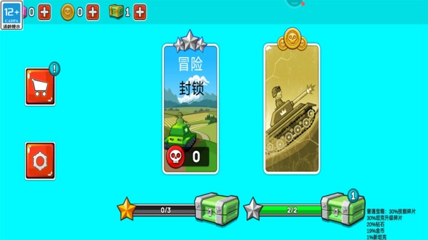 3、冒险封锁等模式,挑战不同难度关卡,击败敌坦推进游戏进程。
