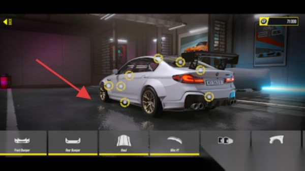 1、改装定制:车库选车,借前唇、侧裙等部件改装外观,调性能参数。
