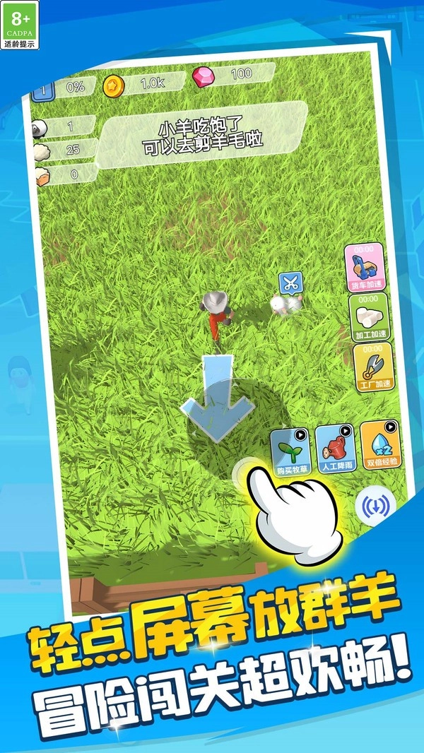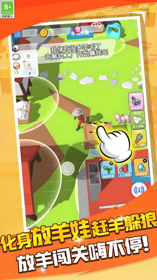 3、核心玩法主打轻松休闲风格,特别契合碎片时间进行体验。然而,若长期游玩,会涉及重复的种植与剪毛操作。