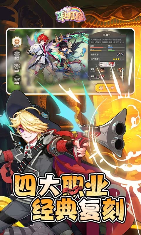 2、四大基础职业,风格大相径庭:战士、盾卫、法师、游侠这四大初始职业各有千秋,伴随等级的提高能够实现转职,衍生出更为丰富多样的技能体系。