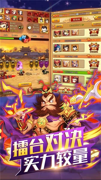 紫、橙、红、金等多种品质武将,随心抽取,自由搭配出豪华阵容。无双吕布、武圣关羽这般传奇英雄,为你助力,让你战无不胜,打造独属于你的王者战队。