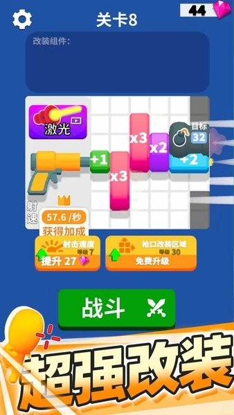 1. 丰富的改装组件:游戏内设有加、乘、炮击这三种改装组件。玩家在进行组装操作时,需留意应把加组件置于乘组件之前,通过巧妙的组装方式,能够获取更高的分数。