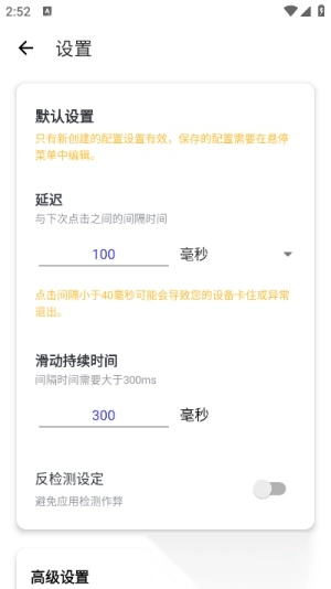 2. 你可自行定义调整各类参数,诸如点击位置、点击间隔、滑动持续时间以及反检测设定等。