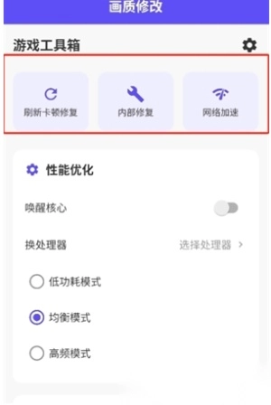 2. 功耗模式:能够自由切换手机处理器的功耗模式,包含低功耗模式、均衡模式以及高频模式,模式越往后,游戏表现越出色。