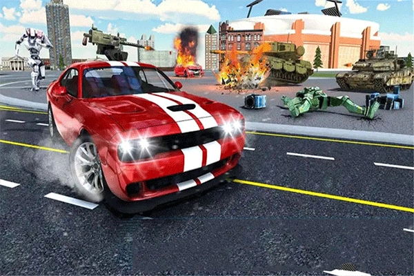 4. 除此之外,玩家还能够点击右侧的汽车图标,切换至汽车形态,进而以多种不同方式对敌方机器人展开攻击。