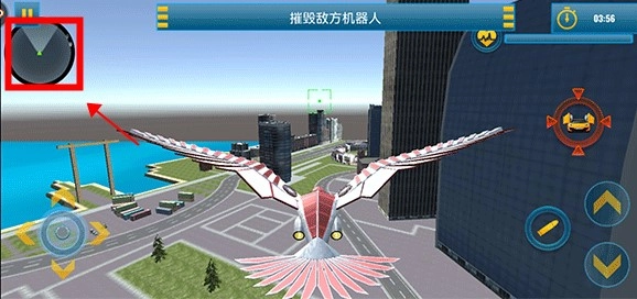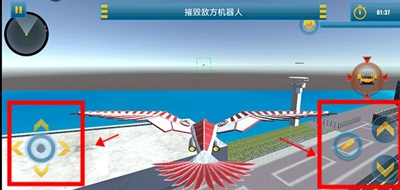 1. 当进入游戏之后,玩家能够借助左下角的控制器来操控机甲鹰进行左右移动,与此同时,利用右侧的上下键对机甲鹰的升降加以控制。