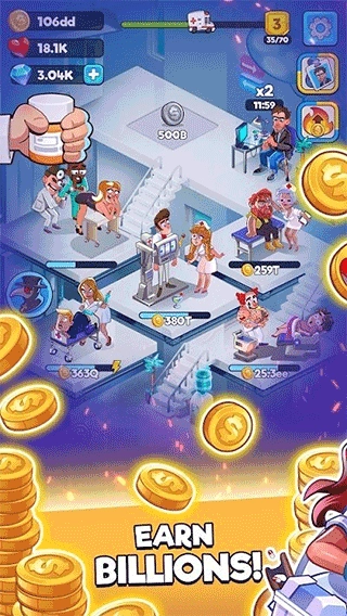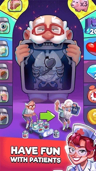 游戏以医院模拟玩法为主题,包含丰富的仪器设施和各种趣味高效的病人,搭配上放置类的操作操作方式带给玩家非常休闲的游戏体验。