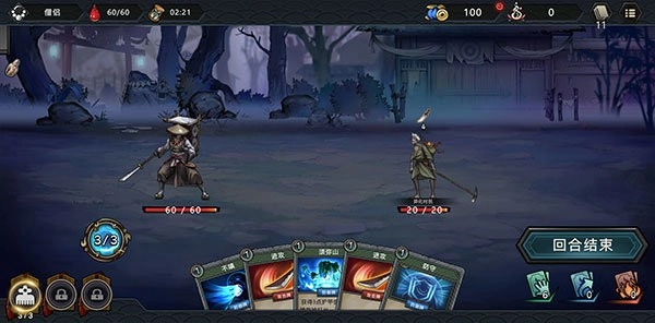6、你与敌人的回合交替进行。当你的回合开启,会抽取新的手牌(默认5张),行动力也会恢复到上限。而当你的回合结束,未打出的手牌将进入弃牌堆。