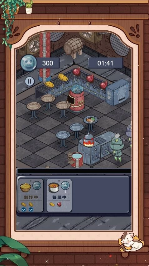 4、你得巧妙地调配机器人,精心规划任务流程,比如先安排切菜机器人准备食材,接着让炒菜机器人下锅翻炒。