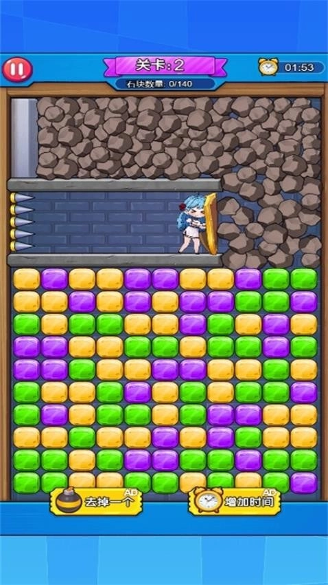 3、玩家需持续挪动宝石并使其消除,最终开辟出一个出口。如此一来,碎石便会从该出口落下,小女孩也就能脱离险境,免遭不幸。