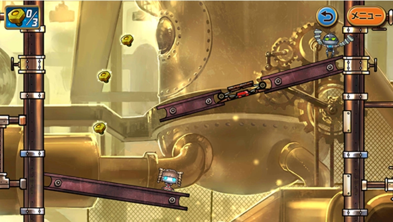 这款游戏的操作极为简便。开场后,机器人棍棍会蜷缩身体开始滚动。在滚动过程中,玩家要设法收集三个齿轮,并让棍棍最终到达它女朋友身旁。其操作方式采用虚拟触屏,玩家无法直接操控机器人滚滚,而是要通过开启地图里的各类机关,来改变滚滚的滚动位置。这些装置的种类与功能大致如下:弹簧能使滚滚弹起飞行;鼓风机可以吹动滚滚,改变它的行走路线;吸铁石会将滚滚吸起。除此之外,还有各种机关与障碍。玩家只有熟知每一种机关的作用,才能顺利完成每一关的任务。