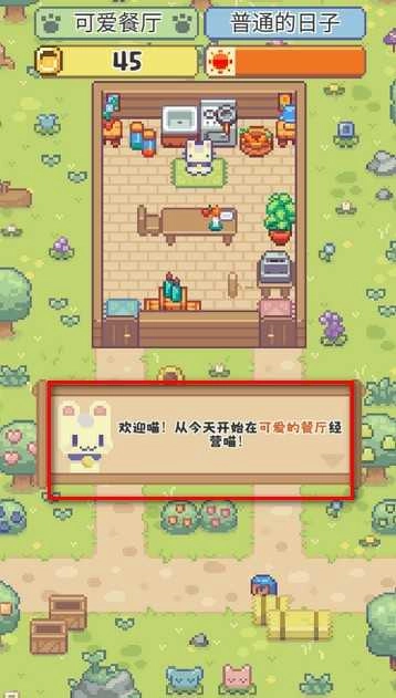 1当玩家踏入喵喵餐厅,只需点击“咱们开店铺”按钮,就能开启营业。