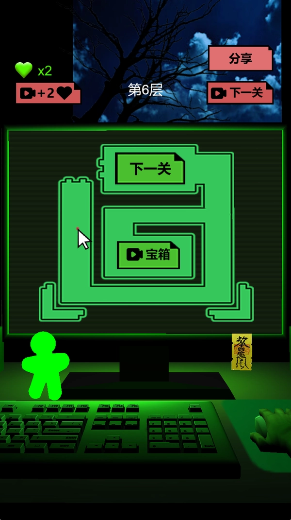《恐怖电脑》是一款解谜逃脱类游戏,它构建了一个阴森恐怖的迷宫世界。在这个世界里,玩家要四处搜集各类线索道具,过程中难免不断试错。在迷宫探索时,不仅要躲避追击,还会频繁遭遇诡异故事,有着极强的代入感。若想成功逃出,就必须解开重重谜题。