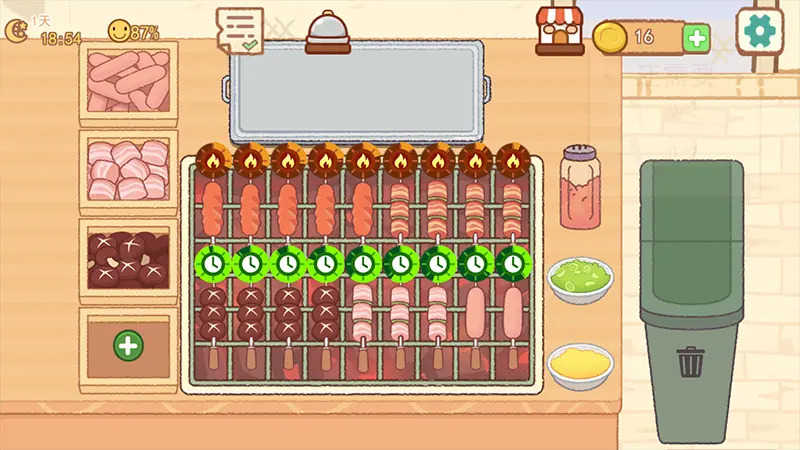 3、每位客人都拥有自身独特的喜好与口味,玩家得依据他们的要求,制作出最契合他们的烧烤美食。