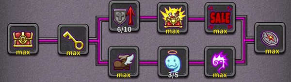 其效果依次为:开局增添宝箱、解锁开局小偷角色、提升防御力、加快移动速度、提高宝箱掉落几率、留存用不完的灵魂、每局游戏首次购买商品免费、增加boss掉落的灵魂数量、有概率获取特殊房间提示。