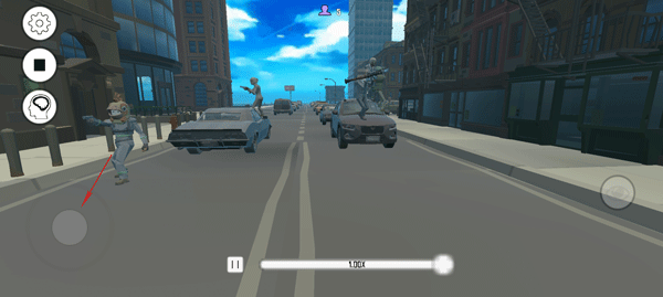 5、通过滑动左下角的摇杆来实现角色模型的移动。