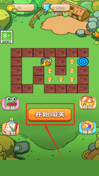 1. 开启游戏,点击“开始闯关”,从而进入游戏。