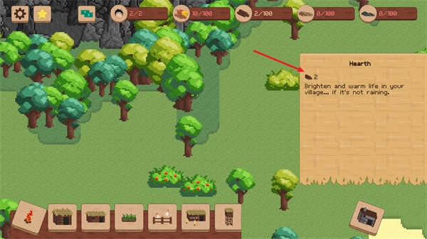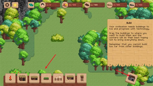 5. 待木材储备充足后,着手建造第一座小屋,借此增加人口上限,使部落更富有活力。