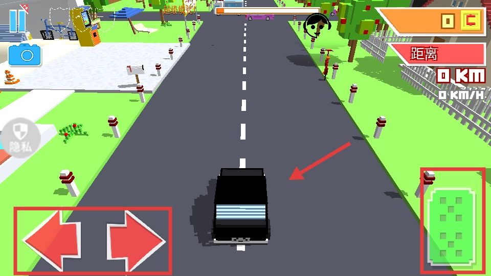 2、左侧箭头控制方向,右侧绿色按键点击加速。