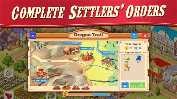 《俄勒冈之旅口袋版》(The Oregon Trail)是一款十分有趣的模拟经营游戏。游戏以荒芜的俄勒冈地区为背景,玩家在其中扮演一位移民,来到这片区域开启家园建设之旅。玩家可以从开垦荒地着手,借助种植、建造、运输以及贸易等方式实现发展。