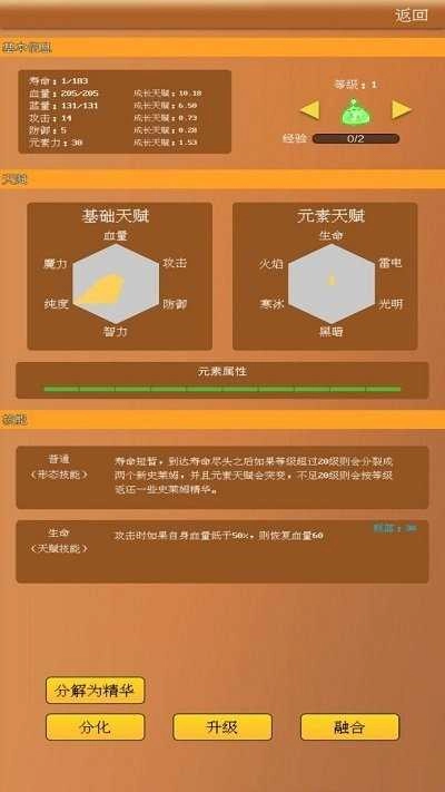 1、卡牌收集:基础史莱姆具备20种初始形态,稀有品类携特殊技能,传说级别可解锁全屏大招。