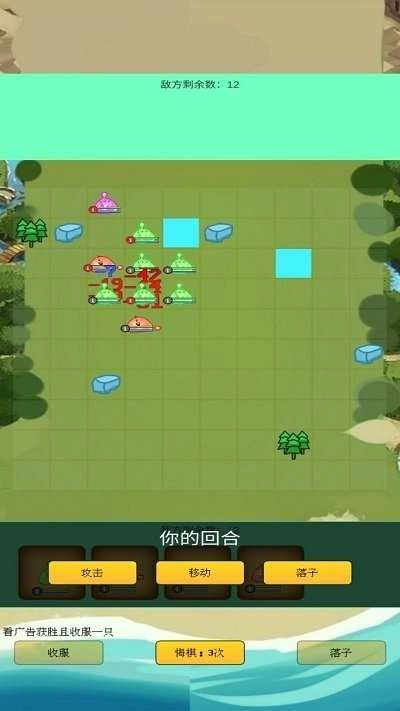 3、在战斗过程中,点击“落子”,即可将史莱姆布置到棋盘之上。