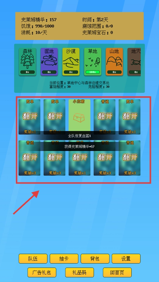 2、进入地图,翻卡牌,提升属性。