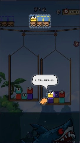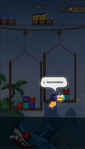 2. 点击最上方的猫咪,使其跳进同色矿车,体验消除带来的愉悦。