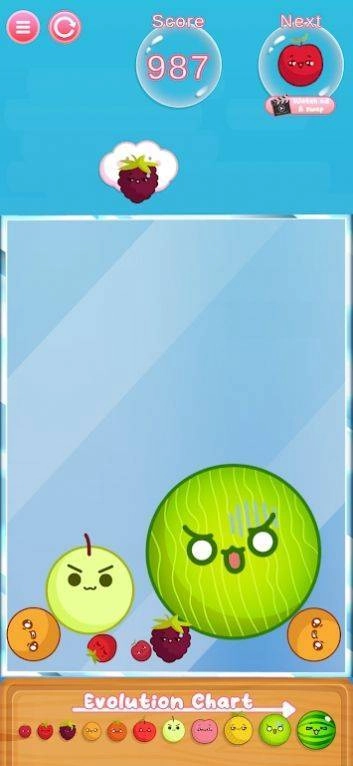 3、你的终极目标是合成最大的水果——一个大西瓜,以此完成挑战。