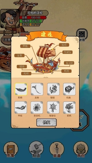 接下来,你需要在确保角色存活的前提下,收集用于建造和修复船只所需的材料。