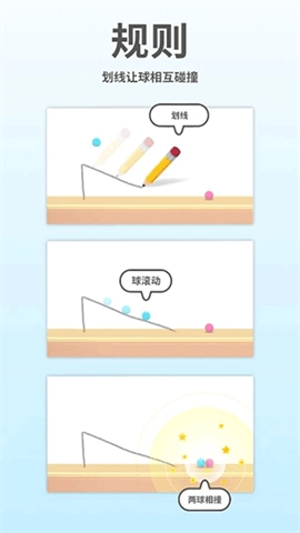 1、规则简单易懂,仅需通过划线触碰小球,上手极为轻松。