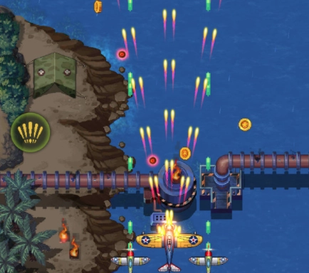 3、2D侧滚动射击游戏,具备动态游戏功能。
