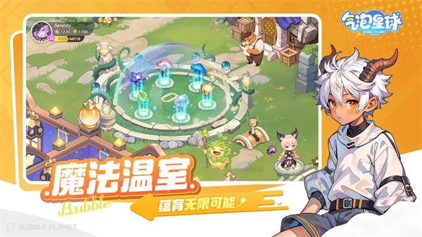 气泡星球是一款极具治愈感的经营养成类游戏,其舞台背景设定在魔法世界。游戏采用超治愈的Q版二次元画风,用心为玩家构建出一个精彩绝伦的魔法世界。在最新的气泡星球官服正版中,玩家能够在这个神秘的魔法世界里开设并经营一家特色餐厅。游戏开始时,玩家首要任务便是依据自身喜好,自由地DIY设计并装修自己的特色餐厅。