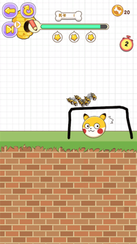 1这是一款极易让人上瘾的闯关游戏,玩家要守护狗狗,使其不被蜜蜂攻击,从而成功通关。
