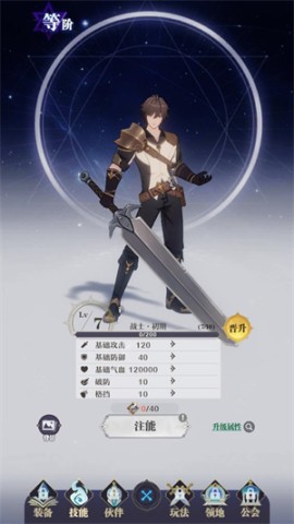 4、若想提升角色实力,点击左下方的巨剑按钮来实现角色升级。不同等级所需经验值有所不同,而促使角色晋升的动力始终由你掌控。