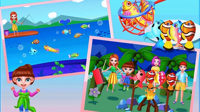 2. 妈妈外出钓鱼,回来后为大家精心烹制了美味的烤鱼。