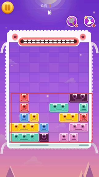 1. 留意红色方框里彩色方块的排列方式,通过滑动方块,让它们连成线从而实现消除。