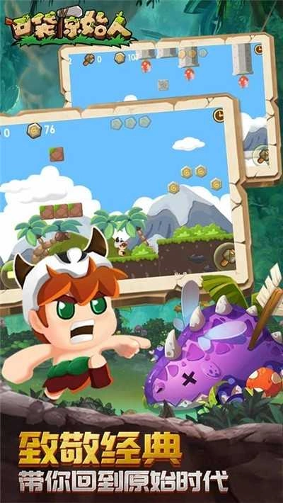 《口袋原始人》是一款趣味十足的横版过关游戏,它向经典的《超级玛丽》致敬。在游戏世界中,设有丛林、海滨、沙漠、雪原这四大主题舞台。玩家在游戏里能够挑选心仪的角色展开战斗,而且游戏内存在众多精彩关卡与各类配件,每一个关卡都是全新的挑战。感兴趣的朋友可以赶紧体验《口袋原始人》,开启游戏之旅!