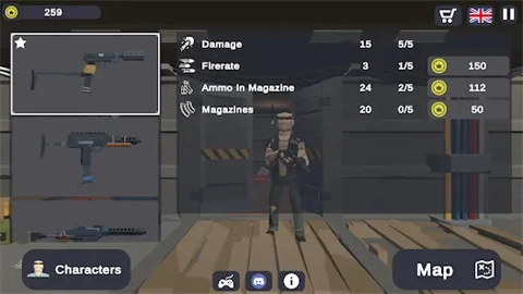 点击游戏,随即进入主页面,在这里能够更换武器与角色,只要拥有充足的金币,即可进行相应操作。