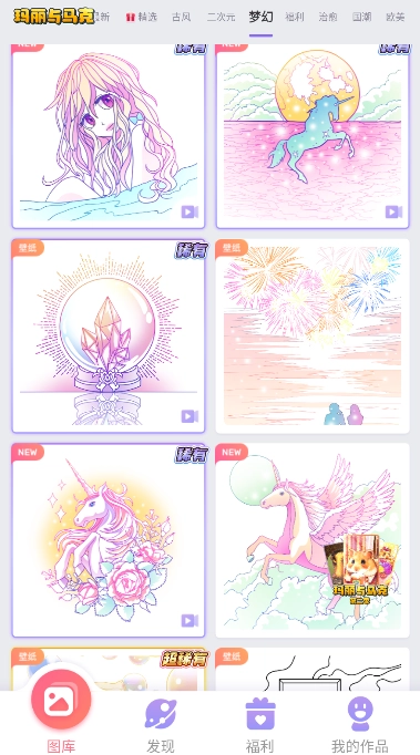1、玩家能够从第二元素、动物、古风、人物等类型中,挑选自己心仪的进行绘制。