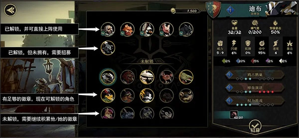 已解锁区域(不带小喇叭)内的角色,是你能够招募的。角色死亡后,你可挑选自己心仪的角色进行招募。招募所得为1级的全新角色。