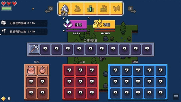 轻点菜单栏里的“装备”按键,就能开启装备界面,在此会呈现已解锁的工具、武器、饰品、印章以及神器。