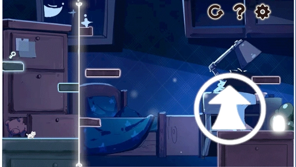 5、通过拖动线条,探寻出能够通往钥匙的路径,同时操控角色进行跳跃移动。