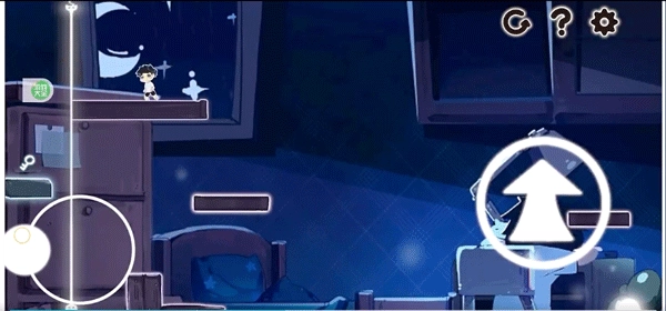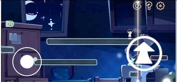 4、在屏幕左侧可操控人物移动,屏幕右侧的箭头用于控制人物跳跃,而发光的线条则能够控制空间变化。