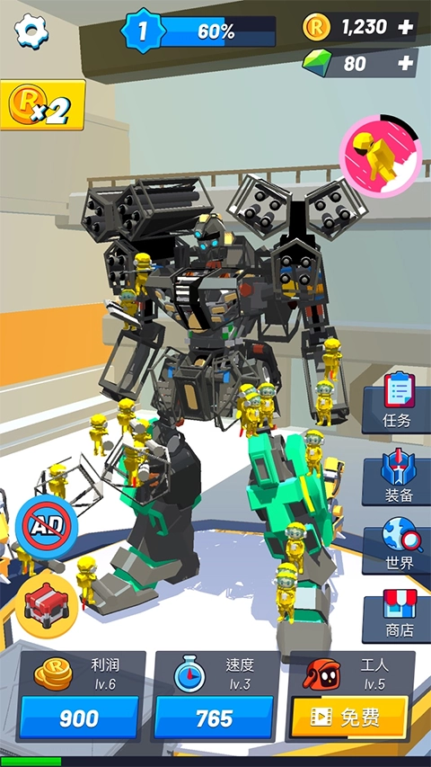 这款游戏设有多种多样刺激的挑战模式。在游戏里,你能够招募工人协助你打造机甲。要知道,打造机甲的每一个环节都不容出现失误,与此同时,还得确保工人数量充足。如此这般,才能快速制造出完美的机甲。并且,制作完成的机甲还能进一步升级,只要给它搭配上更为高级的配件,就能让你的机甲称霸战斗领域,成为当之无愧的战斗之王。