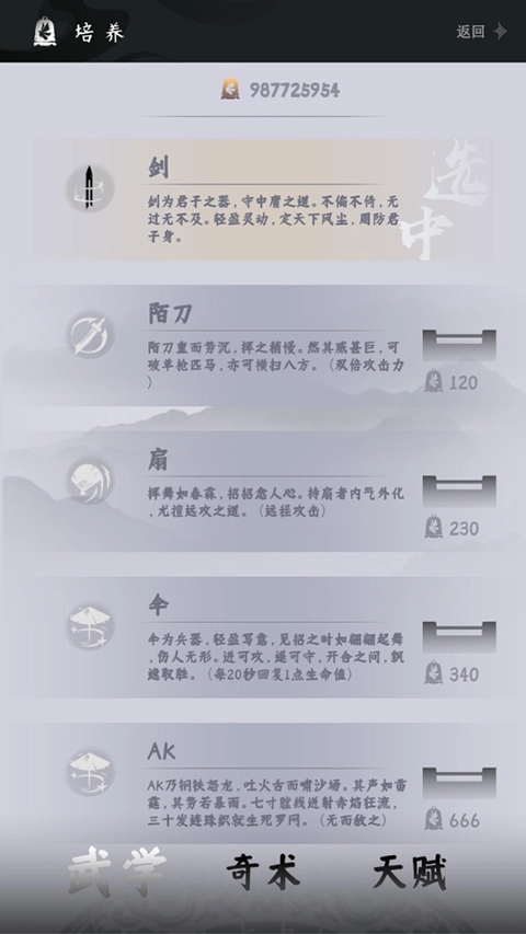 3、在此处能够解锁武学,充满趣味性。
